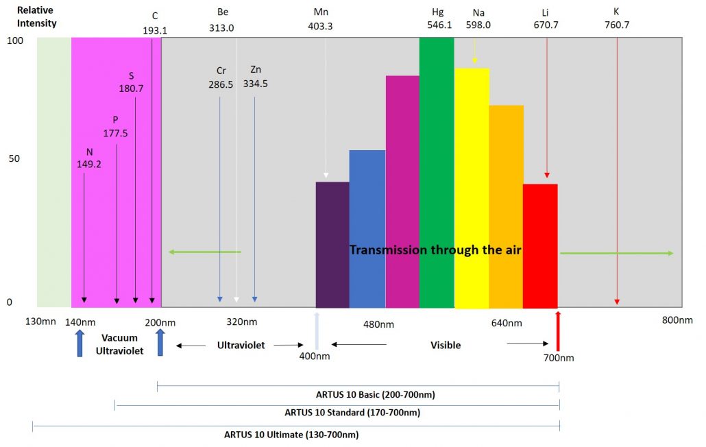 - Wavelength Range: ARTUS 10 Ultimate Plus: 130 – 700nm (with TEC option for better detection analysis of purer materials)